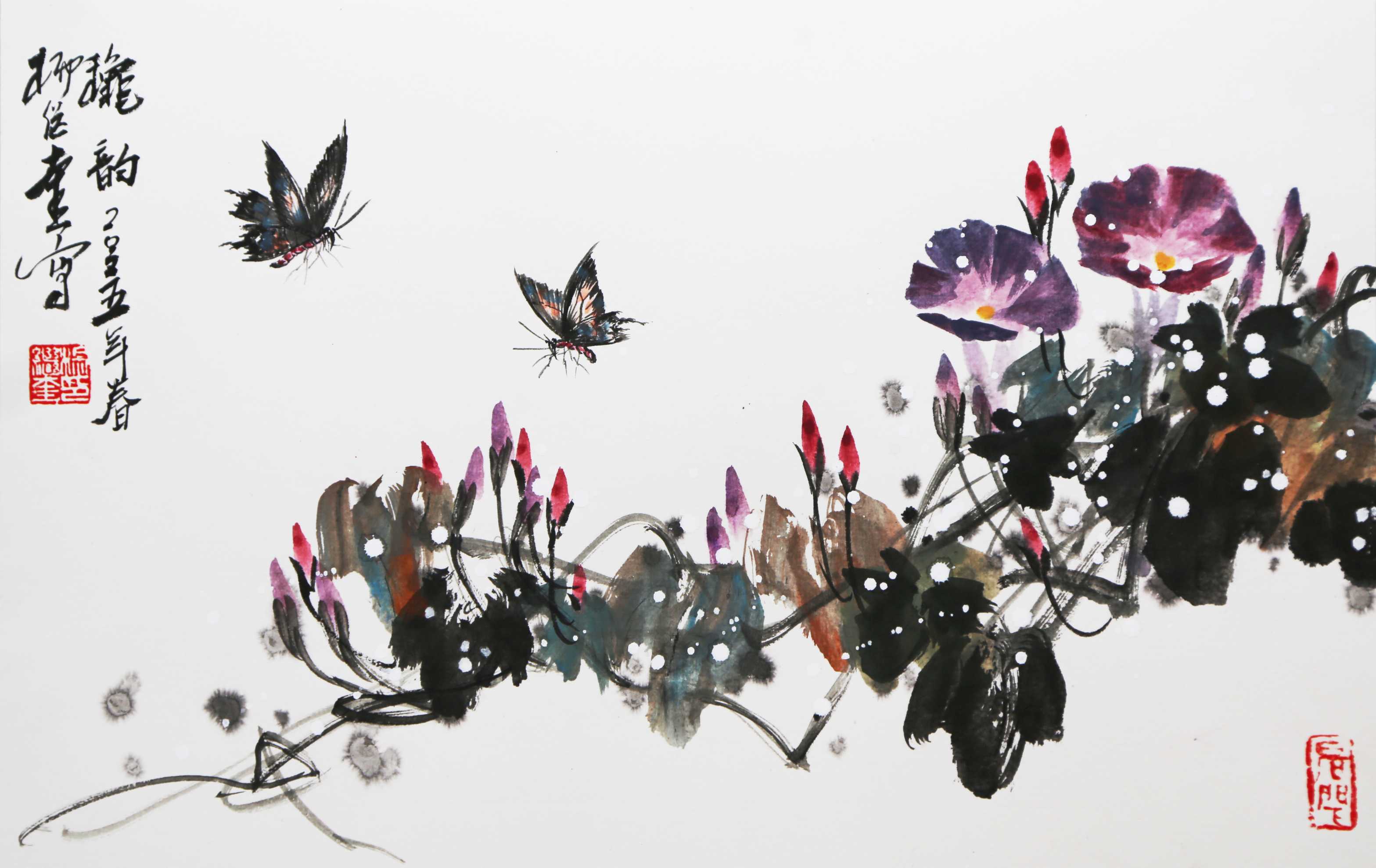 草虫花卉小品 尺寸:50厘米*30厘米